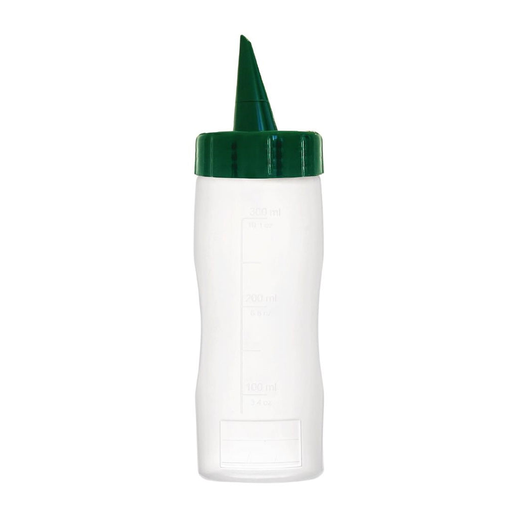 Capacity: 0.35Ltr This 35cl sauce dispenser from Araven is ideal for use with all kinds of oils, sauce, dressings, reductions and syrups. These dispensers are the perfect way to prepare your mise en place and speed up your service, from leading brand Araven who specialise in food storage and innovation.