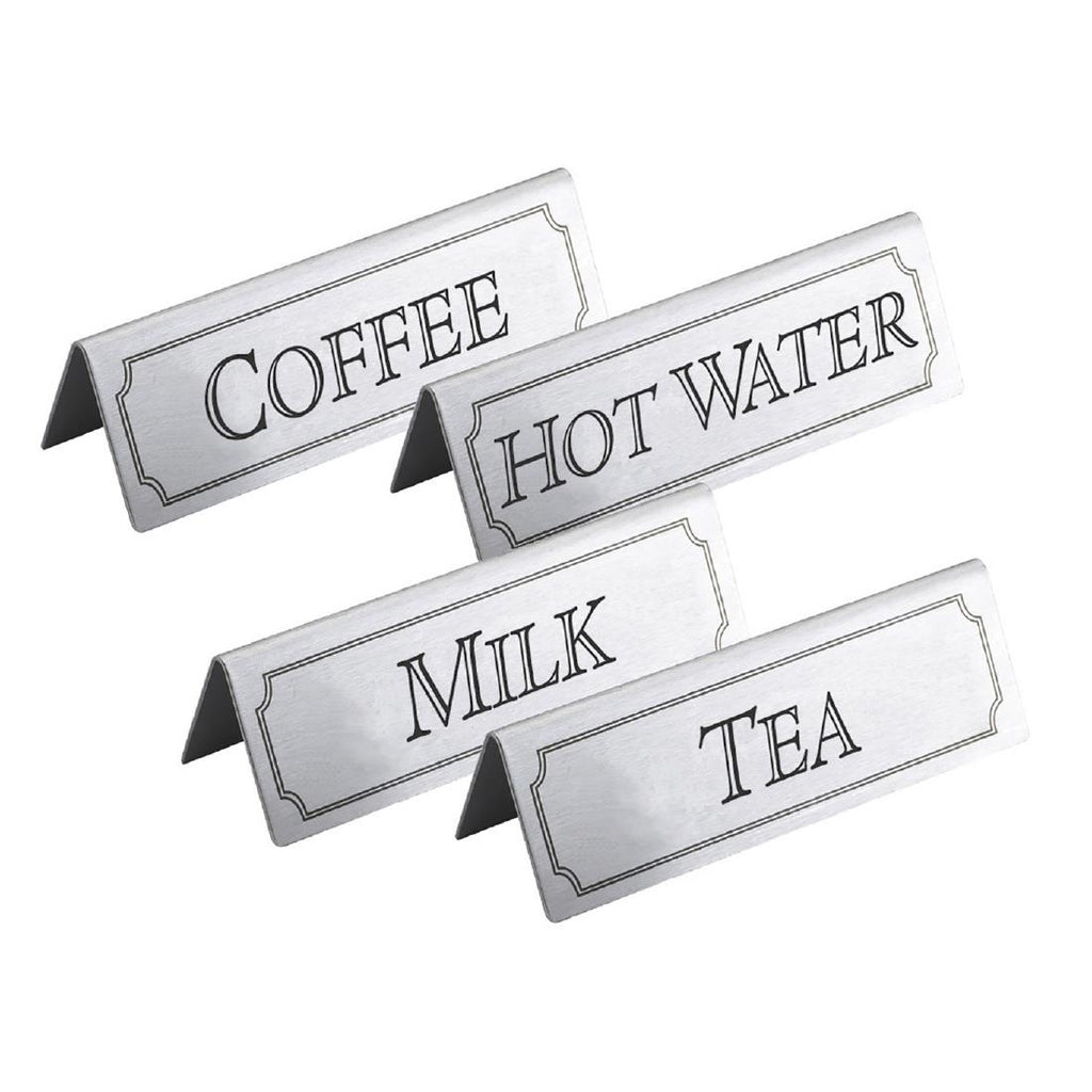 36(H) x 38(W) x 120(D)mm A stainless steel, durable, easy-clean table sign displaying Milk.