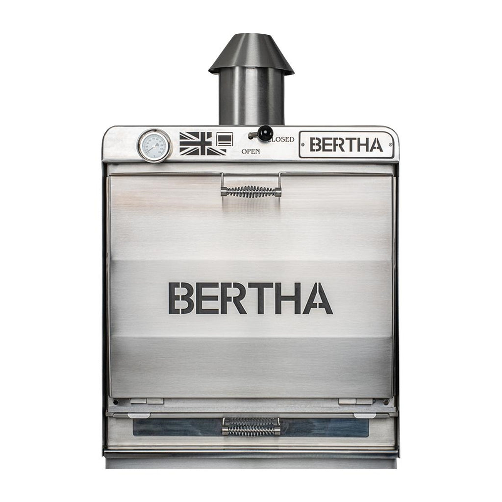 Cook approx. 45-55kg meat per hour The Bertha Professional X+ Charcoal Oven is the mid-sized Bertha and the most popular model. This strong, reliable and versatile charcoal oven has been designed and made in the UK where each piece of steel is laser cut, hand welded and hand assembled by skilled craftsmen.