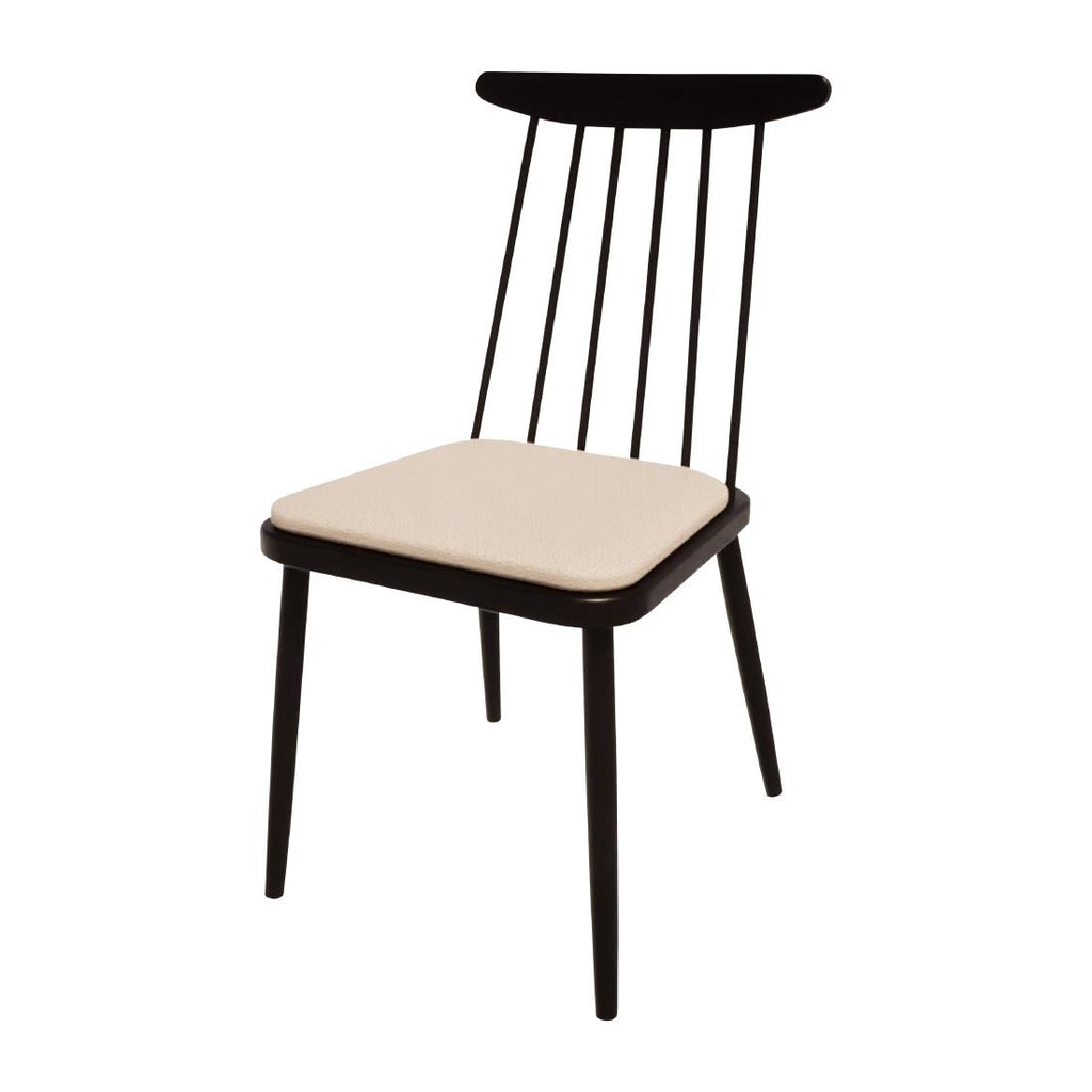 Dimensions: 850(H)x430(W)mm | Cream Seatpad With its curved back, cream seat pad and charcoal-inspired frame, the Bolero Frank side chair from the Bespoke range adds a stylish and retro touch to any venue. Made from robust hardwood, the chair's frame is able to handle even the most demanding of commercial use without damage. The wood is carefully selected for its strength and aesthetics, ensuring that the chair not only stands up to the rigours of daily use but also adds a touch of elegance to any environment.