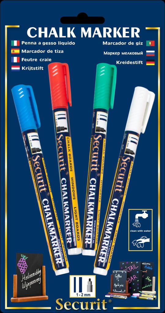 Genware SMA100-V4-COL Chalkmarkers 4 Colour Pack (R,G,W,Bl) Small