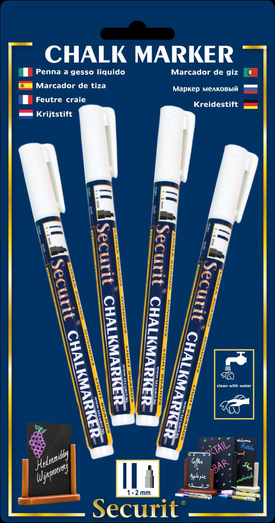 Genware SMA100-V4-WT Chalkmarkers 4 Pack White Small