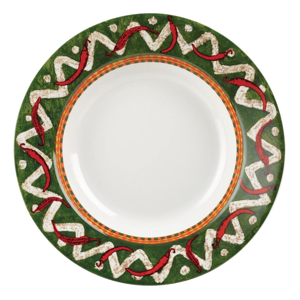 White. Pack quantity: 12. Spice up your tables with Churchill's Salsa range rimmed pasta plates, perfect fun and colourful crockery to compliment any Mexican cuisine. Featuring a specially developed glaze to resist erosion and reinforced edges to increase chip resistance.
