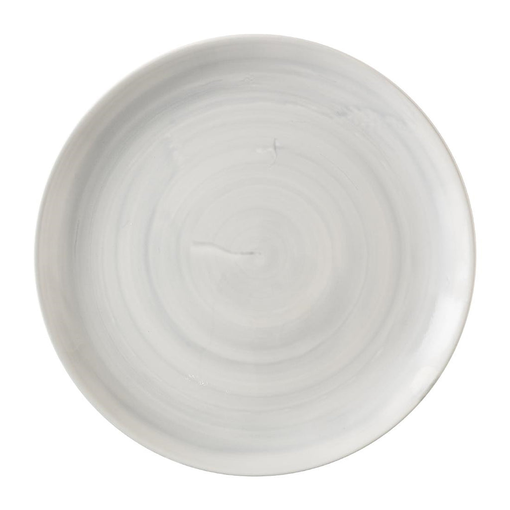 285(Ø)mm/11.2". Pack Quantity: 12 Add a touch of rustic style to any tabletop with these grey coupe plates from Churchill's Stonecast Canvas collection. Hand-decorated in the UK, the plate's subtle spinwash effect is achieved through hand-painted glaze creating a light application of colour and providing a versatile base for chef's creativity.