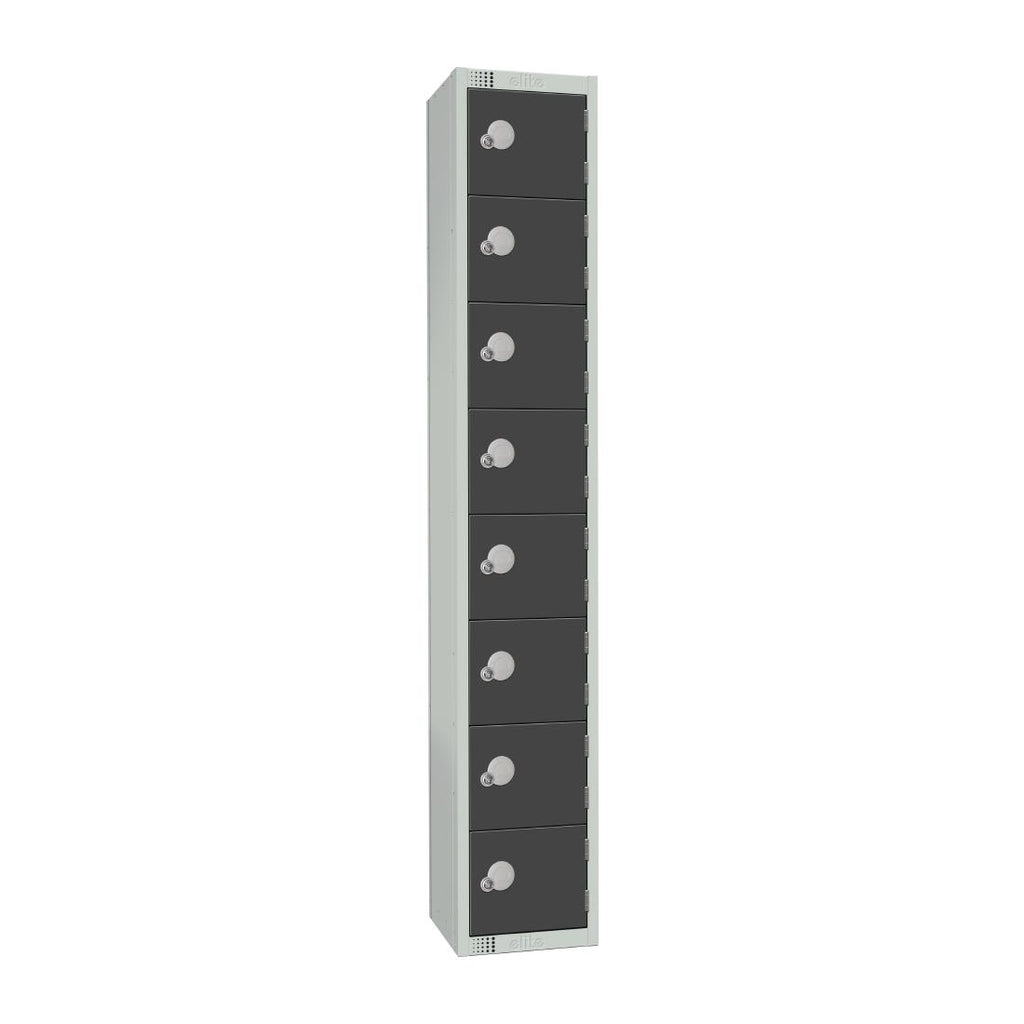 Coin Return with Flat Top These 8 door graphite grey steel lockers are perfect for use in schools, workplaces, leisure centres and much more. Reinforced doors and a welded plinth...