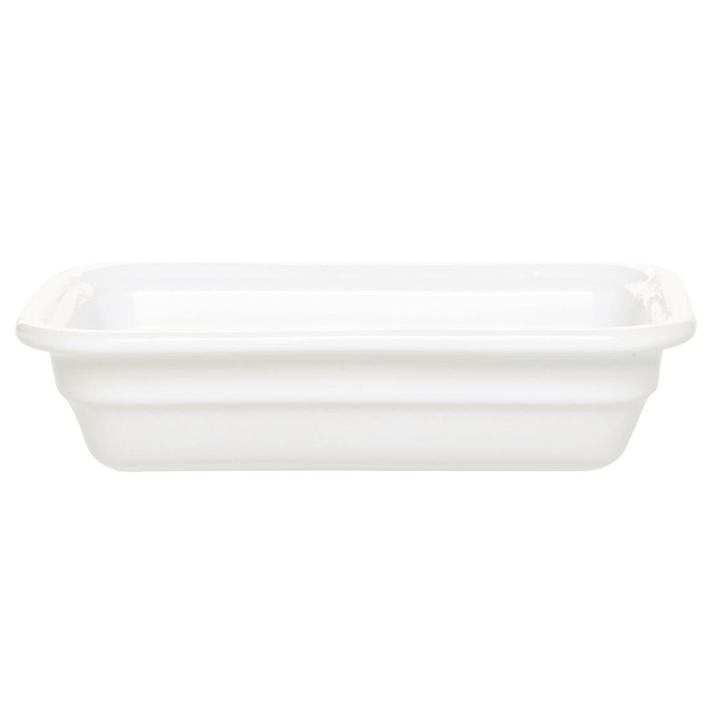 Colour: White. Depth: 65mm. A range of products designed specifically for professional food service use. These gastronorms have extra thick bases and rolled trims to ensure durability in the catering environment. Products are stackable and compatible with chafing dishes and hot/cold counters.