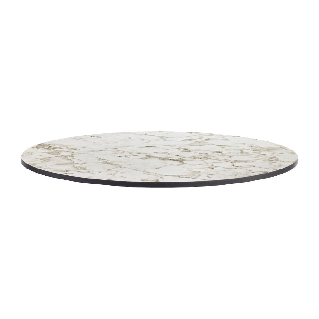 This round Extrema tabletop, measuring 690mm in diameter, boasts a stylish Carrara marble finish, adding a touch of elegance to any space. With a thickness of 12mm, it not only exudes aesthetic appeal but also ensures durability, making it a practical choice for hospitality, workspace, education and healthcare settings.