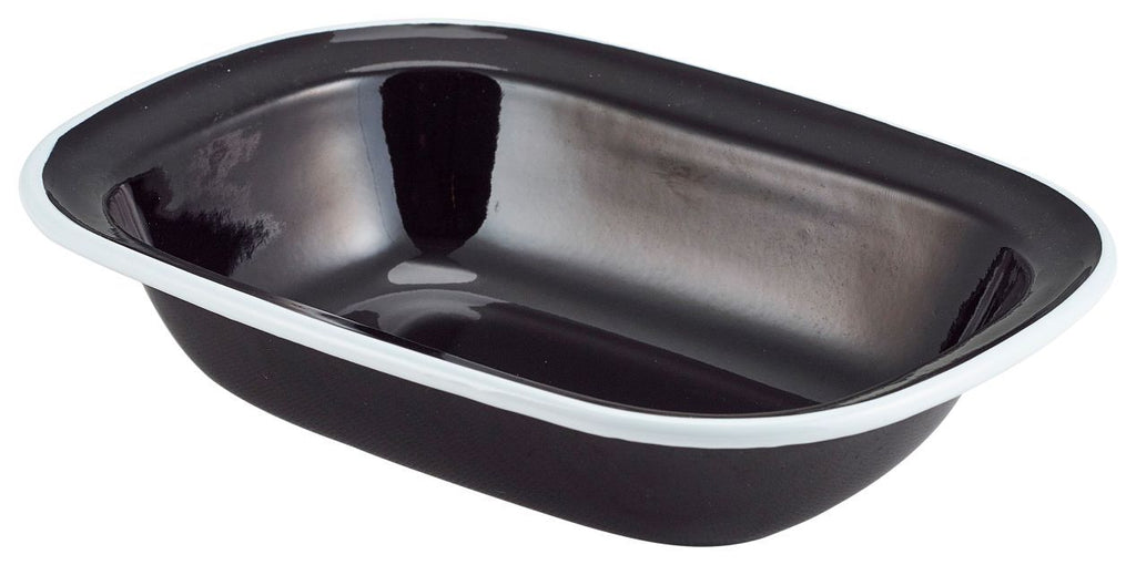 Genware 44020BK Enamel Pie Dish Black with White Rim 20cm - Pack of 12
