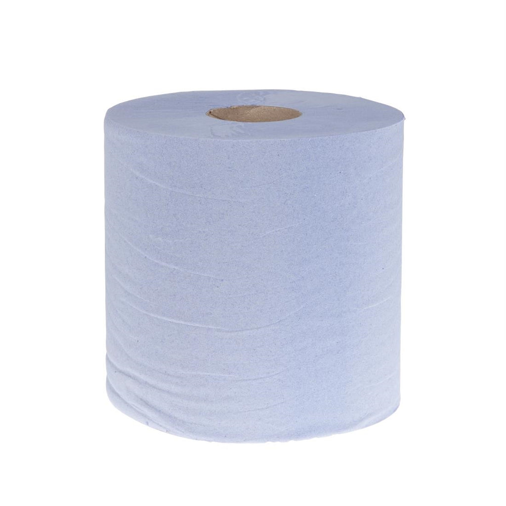 1-ply. Roll Length: 300m. Pack Quantity: 6 1-ply centre feed blue rolls. Roll length 300m.