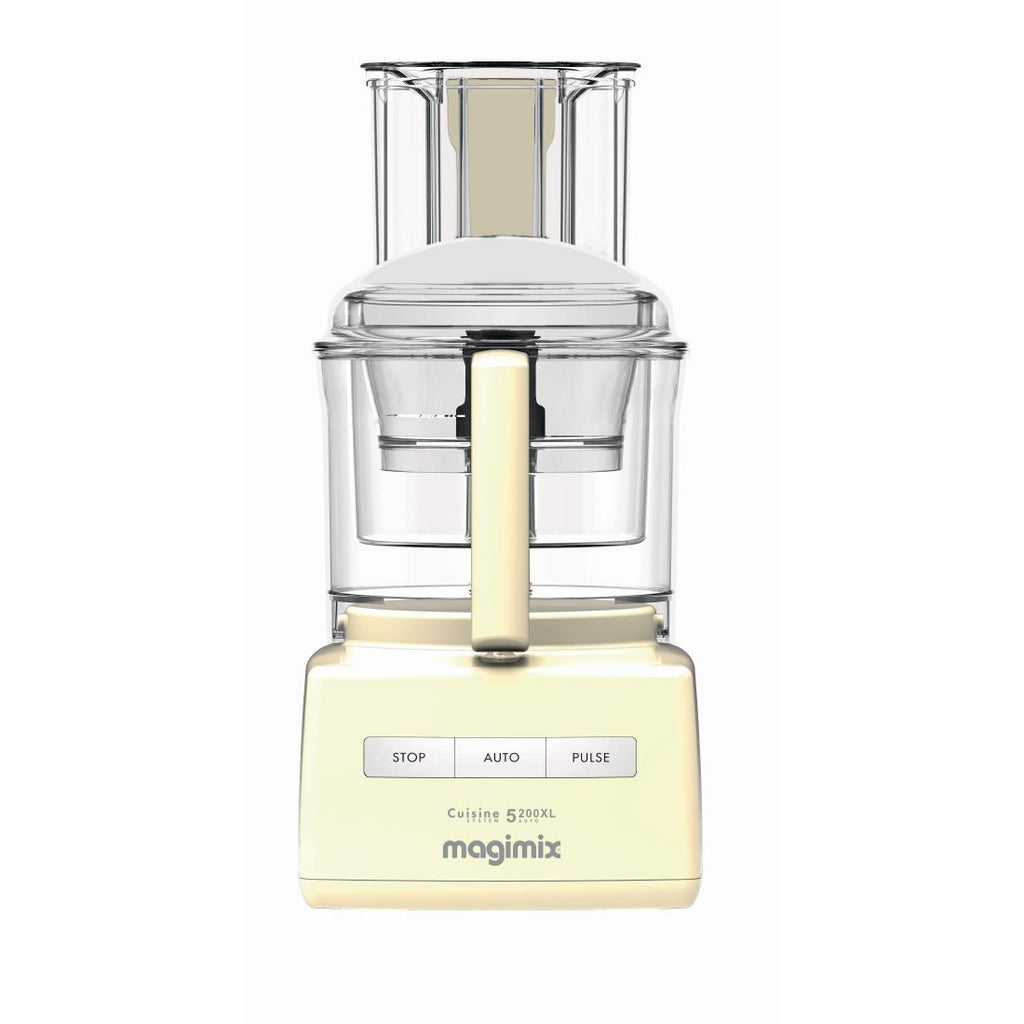 1100W The innovative, highly versatile Magimix 5200XL Premium Food Processor in Cream is renowned for its exceptionally quiet operation and high output. Featuring a one touch pulse for perfect control and precise mixing or chopping, the Magimix 5200XL is also supplied with stainless steel main blade, dough blade, geared egg whisk, midi bowl, mini bowl and three separate discs for slicing, grating and other tasks. The Mini bowl is ideal for chopping and mixing small quantities, the Midi for slicing and shredding and the Main for general purpose mixing, blending, chopping and liquidising. All bowls are BPA free. This Magimix food processor also features a 'blendermix' attachment which deflects liquids onto the main blade, improving overall blending performance.