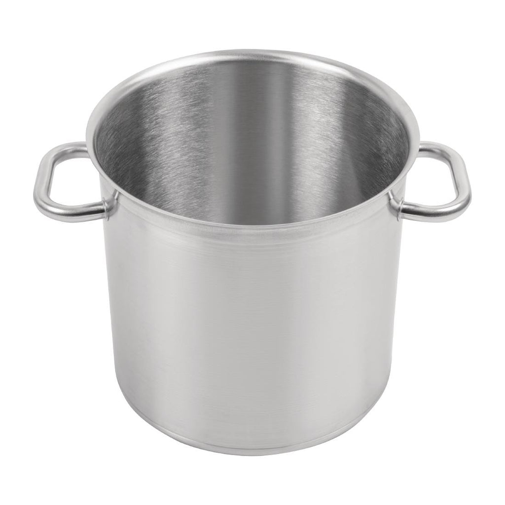 Size: 280(Ø)mm. Material: Stainless Steel Boasting an 11 litre capacity, this stockpot by Matfer Bourgeat is a great way of cooking of soup, stew or gravy. The two carrying handles make it easy to transfer the pot between hobs or serving areas; allowing for a safe and easy way to cook.