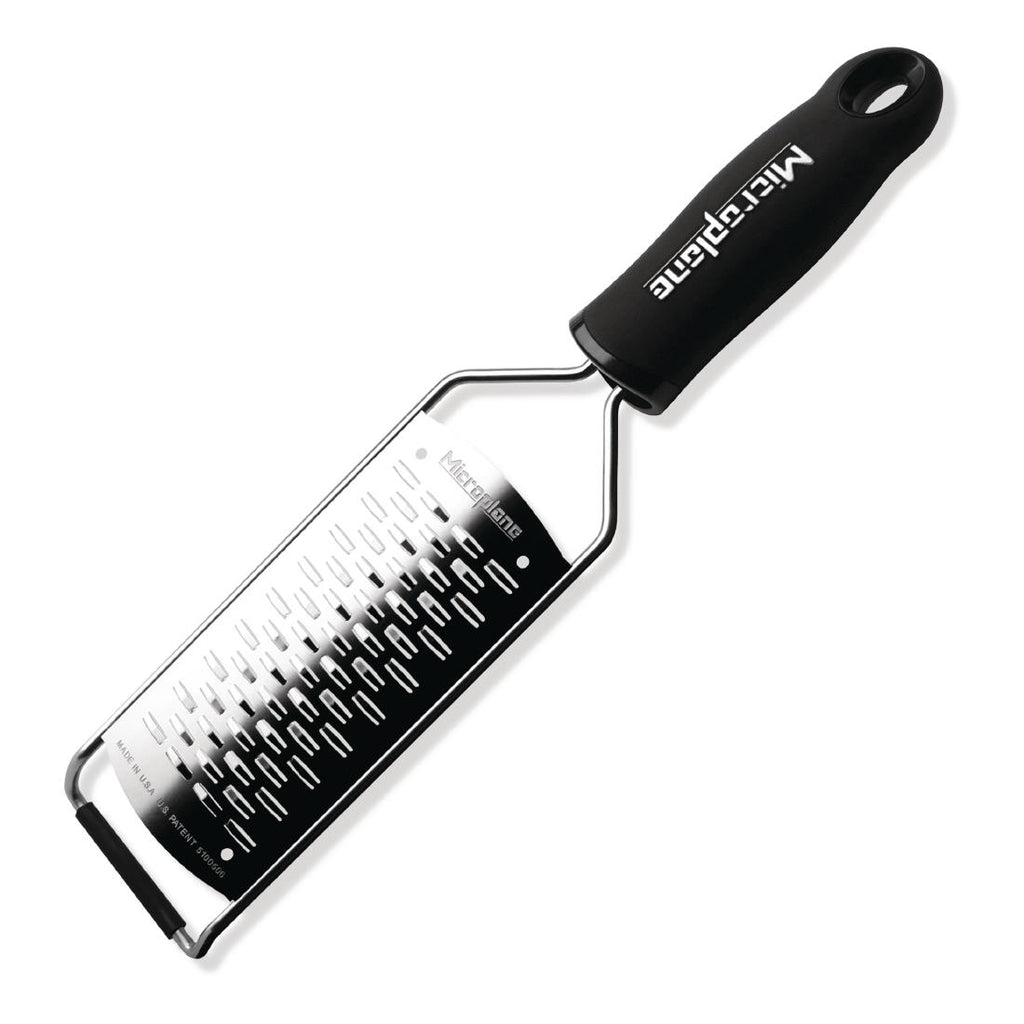 Ribbon shred. Grater width: 70mm. Size: 320mm Create delicate ribbons and interesting textures with this Gourmet ribbon grater from Microplane. Boasting a sleek, innovative design, the utensil creates intricately grated ingredients to help you produce impeccably presented dishes. Made with a non-slip rubber end, the grater gives you more stability and prevents slipping to ensure your safety. The ergonomic soft-touch handle also provides additional comfort to help you cope with lengthy tasks. Dishwasher-safe, the grater can also be cleaned with ease to help you keep it hygienic.