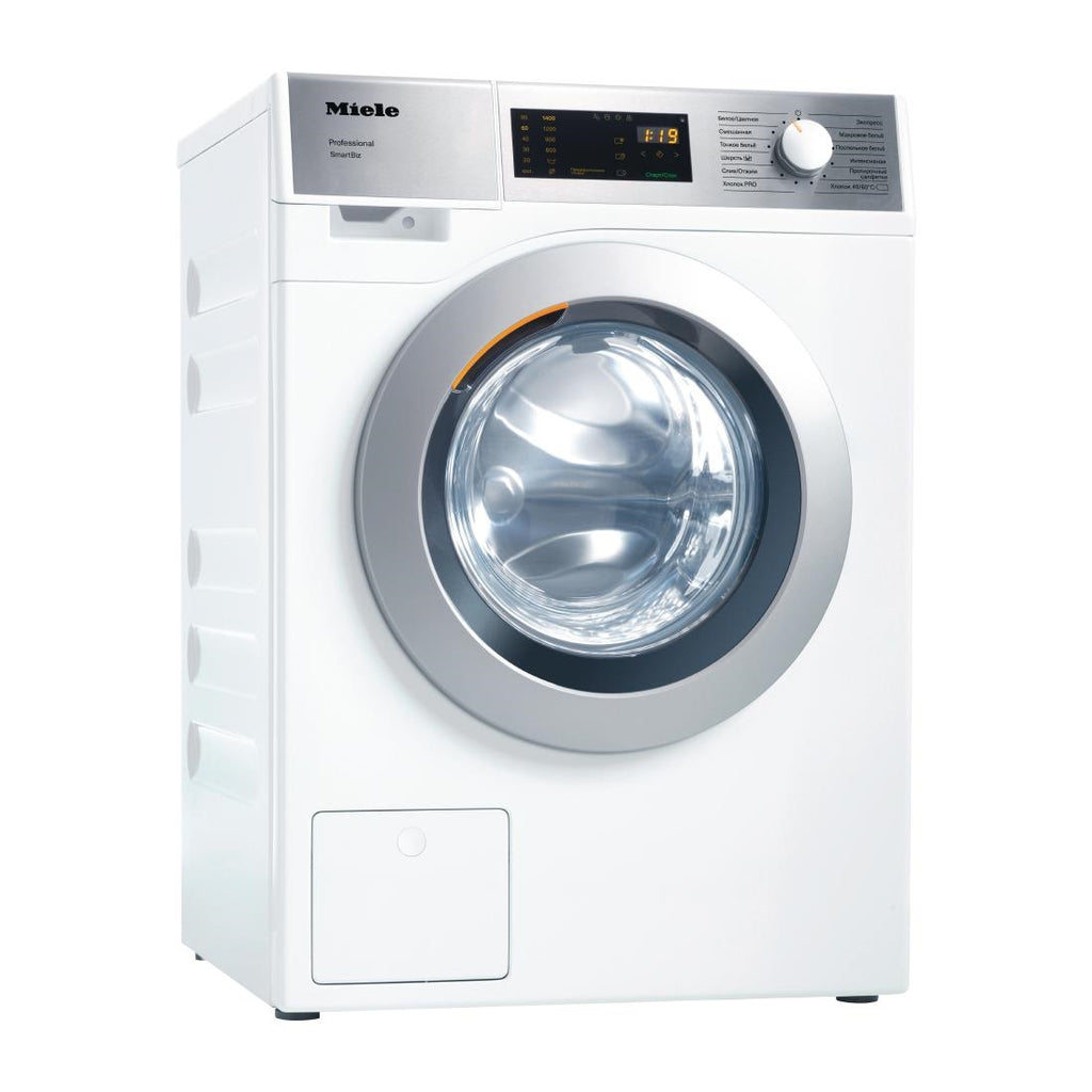 Capacity: 7kg. 1400rpm. Energy Rating A+++ Designed for efficiency and performance, the Miele PWM 300 SmartBiz washing machine is a great entry-level laundry solution for small businesses. With an advanced automatic load control function, water and energy use are carefully regulated to reduce running costs and environmental impact. Washing results are great too, thanks to the 1400rpm spin speed and high-volume 7kg load capacity.