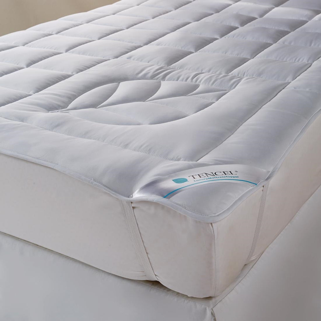 Super King. 1830(W) x 2000(L)mm Pocketed, quilted mattress topper, with Tencel filling to give your guests a relaxing night's sleep. Filling: 30% Tencel, 70% polyester hollofibre. Fitting: elasticated bands. Cover: 100% polyester microfibre.