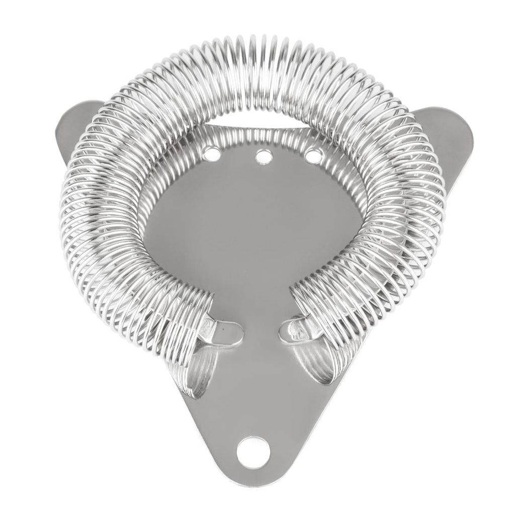 120(L)x105(W)x22(H)mm | 4 3/4(L)x4 1/10(W)x7/8(H)" Perfect for professional bartenders and craft cocktail enthusiasts, this lightweight cocktail strainer from Olympia features a unique triangular design. Its acute angles allow it to rest securely on the rim of your mixing glass or shaker tin, while the coil snugly grips the interior walls. Made from stainless steel, the strainer is ideal for effectively filtering out ice and other ingredient particles, ensuring a smooth, perfectly crafted cocktail every time.