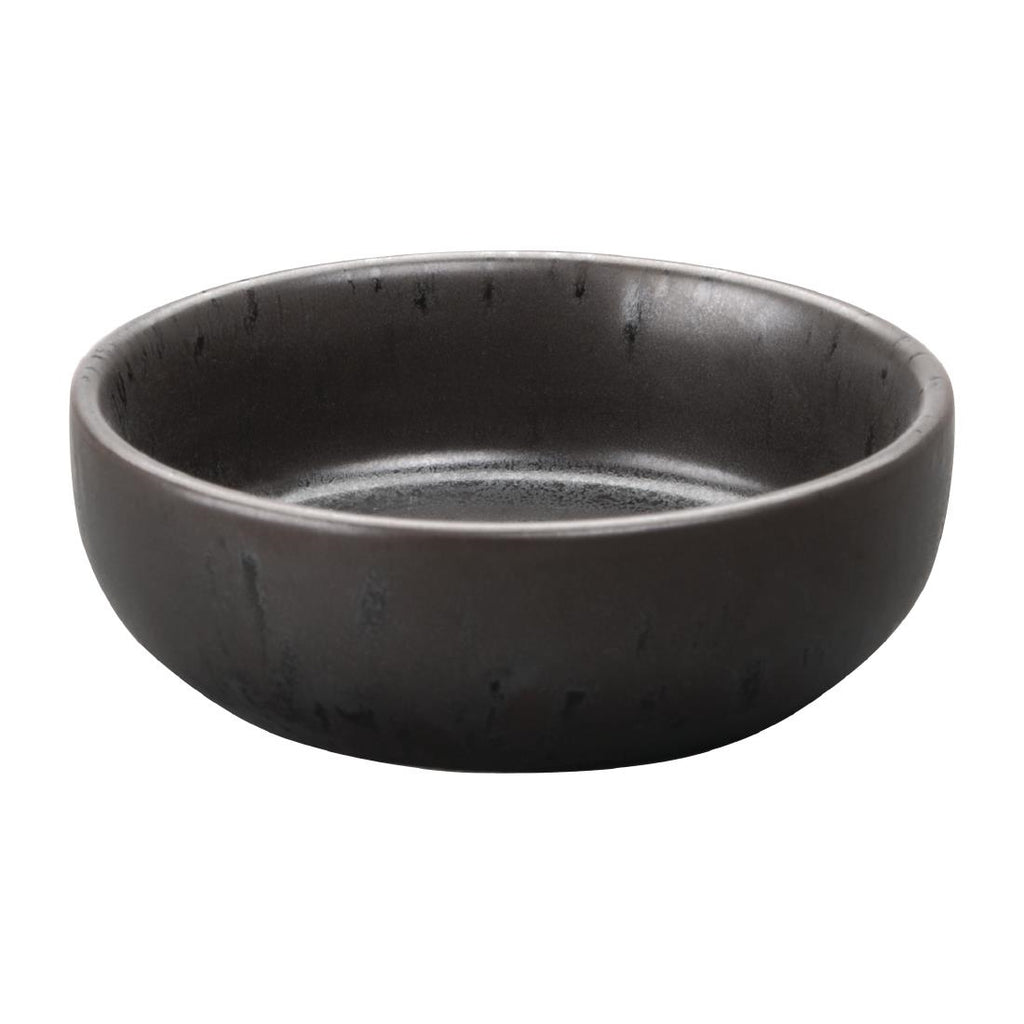 80(Ø)mm / 3". 85ml Create a unique backdrop for your food. Olympia Fusion will add atmosphere to any table setting. The nature of the reactive glaze means that no two pieces are the same. The versatility of the range will add flair to a refined or homely menu. The dipping dish is perfect for a soy and wasabi dip, or as an individual condiment serving