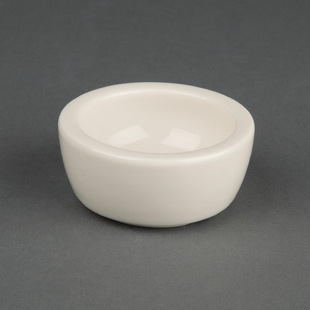56(Ø)mm/ 2 1/4". Ivory. Pack quantity: 12. Designed with a simple, clean shape in a soft ivory colour, this butter pad from Olympia Ivory will impart a contemporary feel to your food service. Ideal for use in cafes, hotels or restaurants, the pad is made from fully vitrified porcelain with rolled edges, which gives heat and shock resistance, as well as high glaze durability. The butter pad is oven, microwave and dishwasher safe, allowing it to withstand the rigours of a busy catering service.