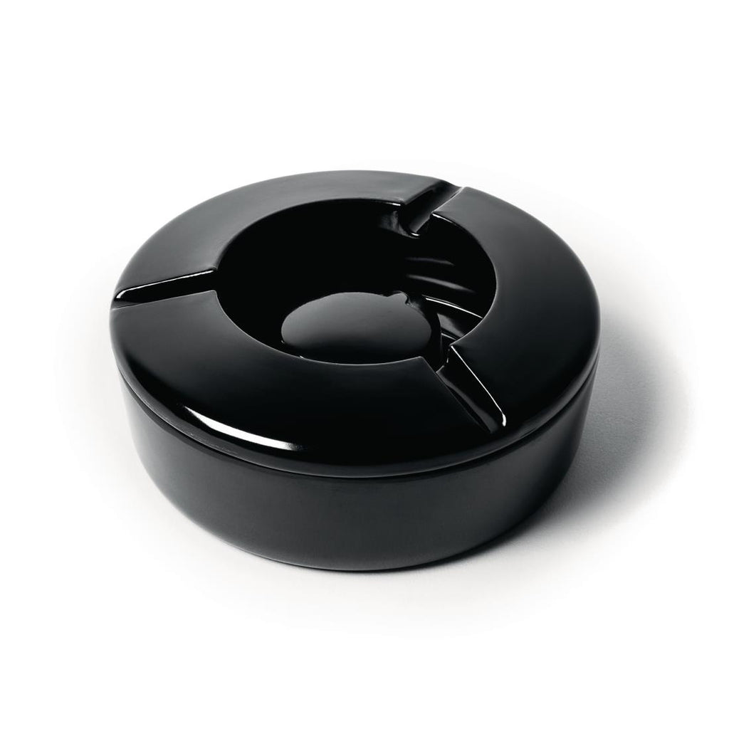 4(h)x 12,5(Ø)cm A windproof ashtray with a two piece design which both reduces odours and keeps ash and cigarette butts out of view, also prevents ash from being blown away, perfect for use on tables in pub gardens.