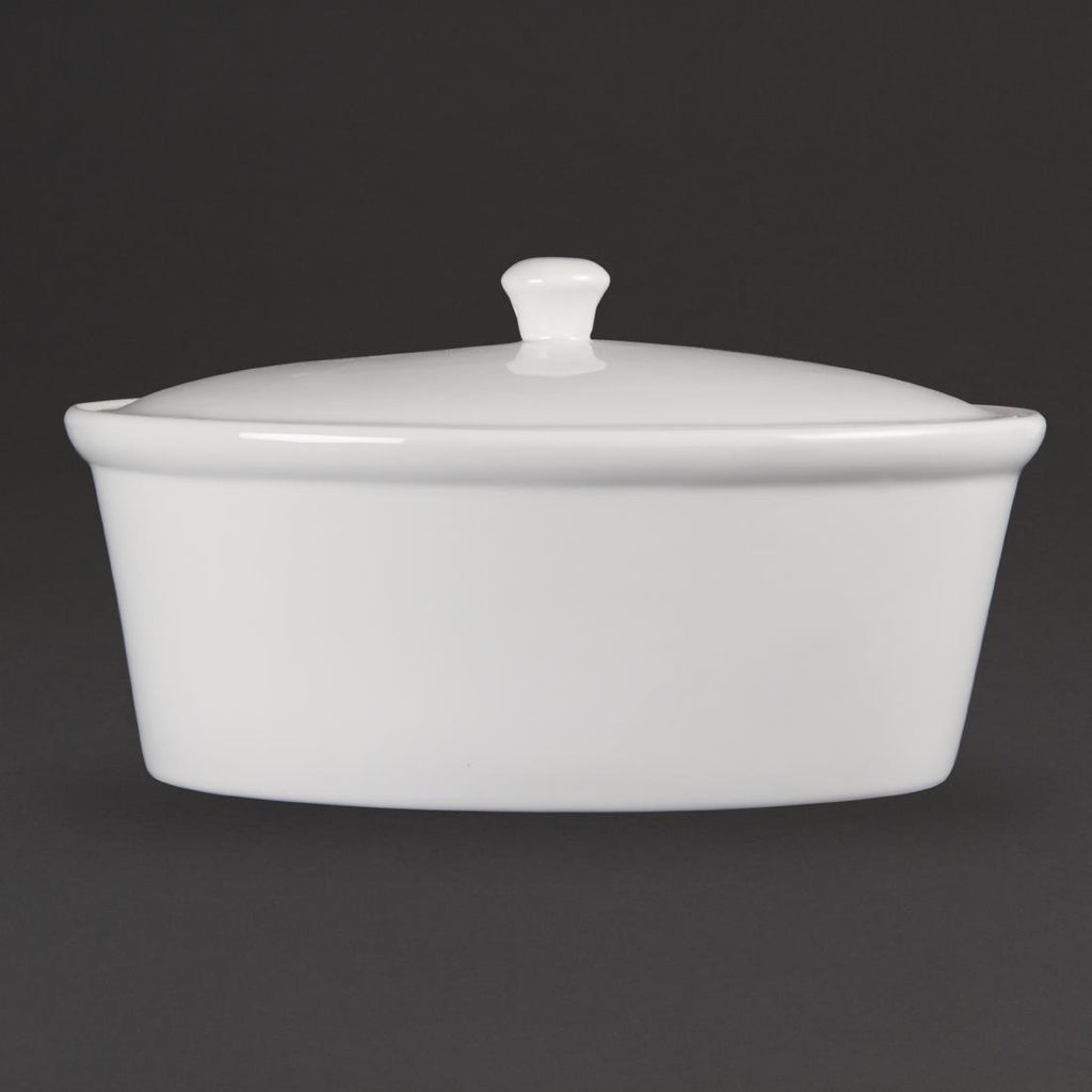 Olympia Whiteware Oval Casserole Dish with Lid 2.2Ltr