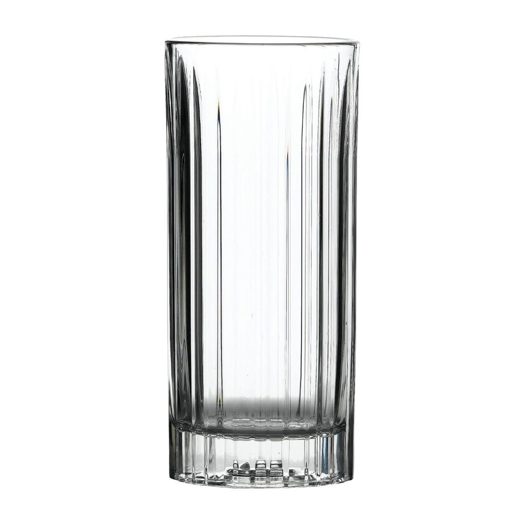 470ml | 16½oz. Pack Quantity: 6 Step back in time with these Flashback Cooler Glasses from Onis. Featuring a classic cut-glass facet design and an embossed base, these glasses reflect the style of 1940s glassware and the atmosphere of Hollywood Noir films. Perfect for enhancing any drink, these durable, dishwasher-safe glasses are a must-have for hotels, bars and restaurants.