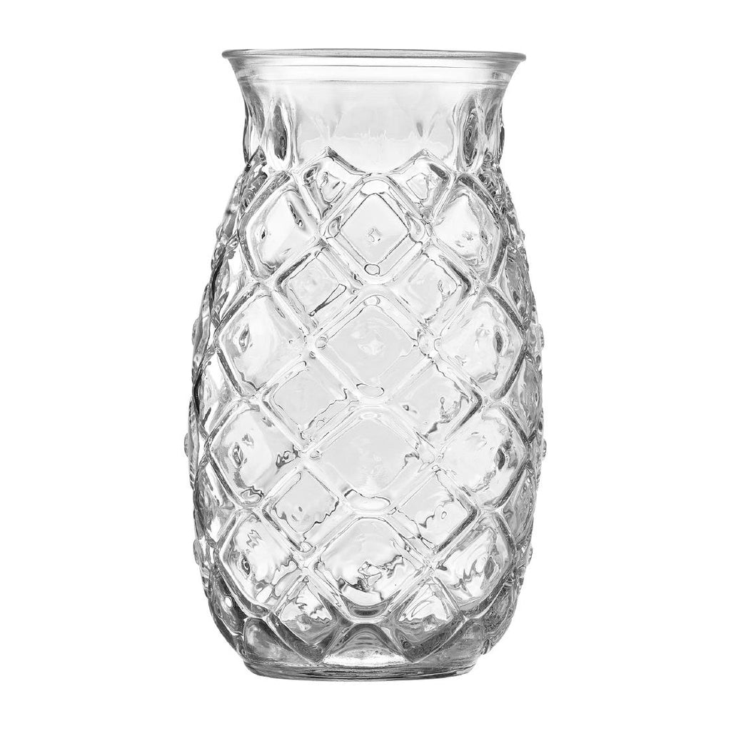 500ml | 17oz. Pack Quantity: 6 Embrace the spirit of Hawaii with these pineapple Tiki cocktail glasses from Onis. Sculptured with a realistic pineapple design, these tiki-style glasses are perfect for tropical cocktails and can also be used to serve refreshing fruit punches and non-alcoholic mocktails. They are crafted from durable soda-lime glass and are dishwasher safe for quick and easy cleaning.
