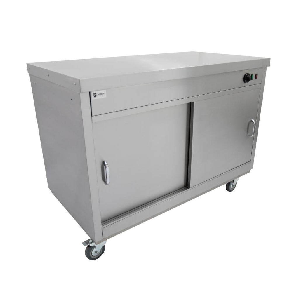 360 plate capacity Looking to accommodate large quantities of plates or plated meals? Then the Parry hot cupboard is the perfect choice. With insulating double skinned stainless steel throughout the construction, the hot cupboard is durable and long lasting - ideal for care homes, events and canteens.
