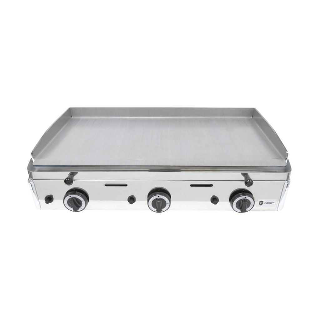 LPG.Power:8.25kW This stainless steel construction Parry LPG gas griddle comes with stainless steel burners and a natural gas conversion kit, making it ideal for mobile catering use. It is easy to clean with a high protection frame to prevent spatter, with a one piece drip tray included. Gas hose and regulator not included.