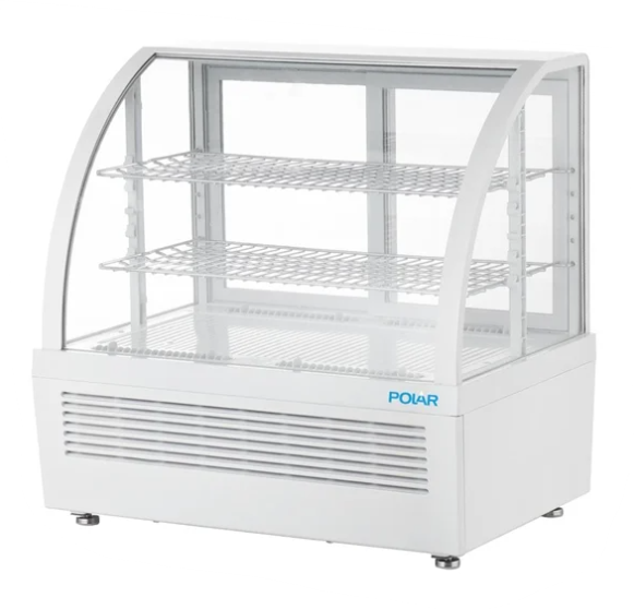 Width: 705mm. 105W. Stylish and attractive, the white Polar C-Series 100 litre countertop display fridge is perfect for showcasing your chilled desserts, drinks and snacks. With two adjustable shelves and energy-efficient LED lighting, the fridge maximises the visual impact of the contents, while helping to promote impulse purchases - great for positioning near payment areas.