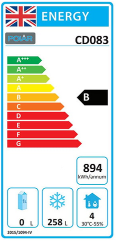 210W. Total usable capacity: 258 Ltr. R600a "The Polar C-Series single door freezer is designed to reliably maximise frozen storage capacity in less demanding commercial kitchens. The freezer delivers up to 258 litres of frozen storage over six fixed shelves, meaning there's plenty of space.