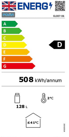 180W. Hinged door. R600a The Polar G-Series back bar cooler is the perfect solution for reliably storing and attractively merchandising bottled and canned drinks. The Polar does a great job at maximising sales, as the contents are highlighted perfectly with highly efficient LED lighting.