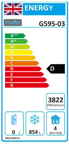 700W. Total usable capacity: 770 Ltr. R290 If you're looking for a high capacity frozen food storage solution for your professional kitchen, look no further than the Polar G-Series double door freezer. Designed specifically for the commercial kitchen, the freezer includes many features to make day-to-day use in restaurants, hotels and schools hassle-free.