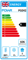 280W. Net capacity: 887Ltr The Polar G-Series upright double door fridge pairs generous 887-litre usable capacity with an impressive B energy rating, giving high-output kitchens powerful forced-air refrigeration without excessive...