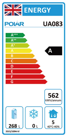 350W. Usable capacity: 268Ltr. R600a Commercial counter unit which also provide additional work surface space. Automatic defrost with constant digital display. Fitted, lockable castors for easy manouvering. Pattiserie tray (600 x 400mm) compatible (maximum capacity 7 trays per door)