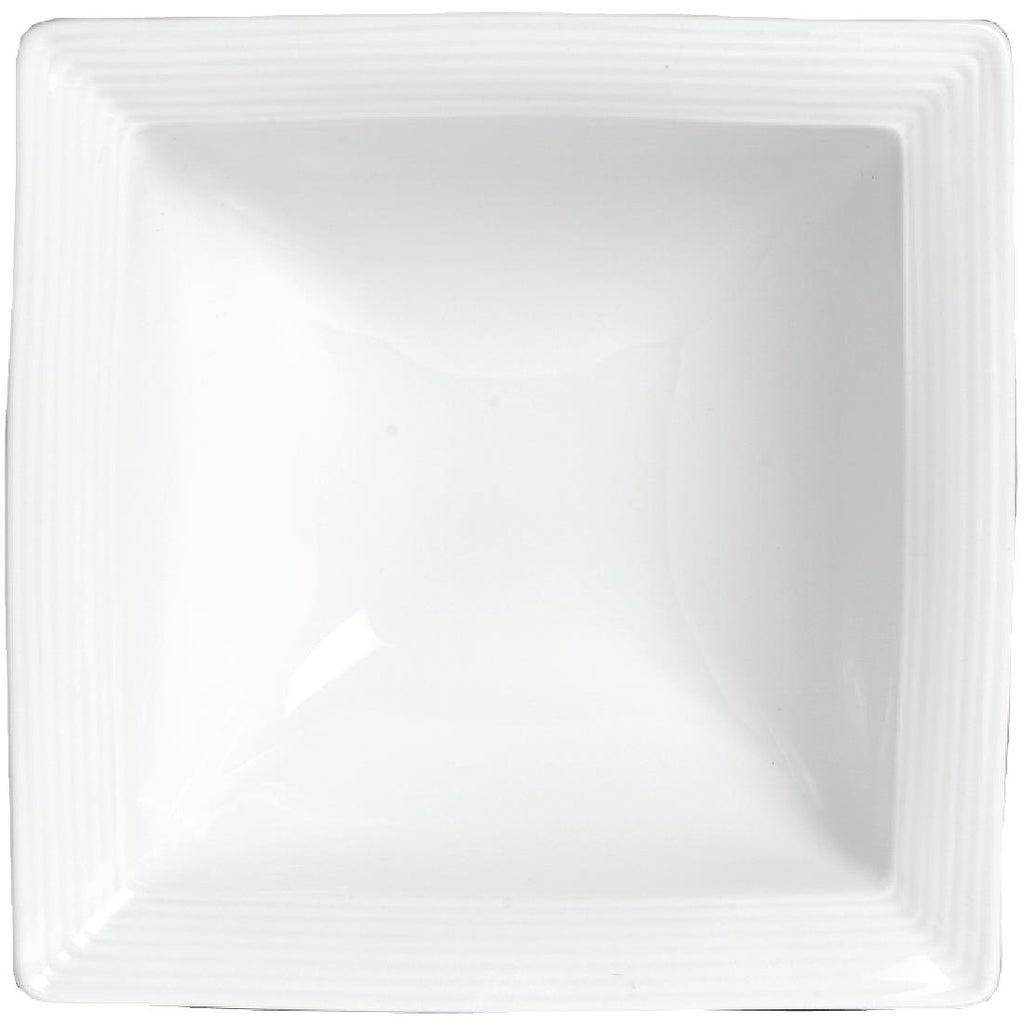 Pack Quantity: 12 This porcelain 6.25" square cereal bowl from the Aura collection creates a superb setting for fine dining, adding a stylish emphasis to every dish. With a White finish and durable reflective glaze, Aura has been developed to meet the demands of modern food presentation combining contemporary design with classic, practical features.