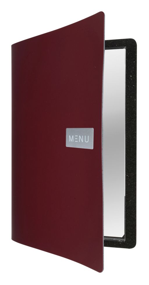 Flexible And Easy To Clean Bonded Leather Menu With A Metal Plate. Every Menu Holder Includes One Extra Loose Metal Plate For Custom Printing. Also Includes 1 Double-Sided Insert That Displays And Protects 4 A4 Pages.