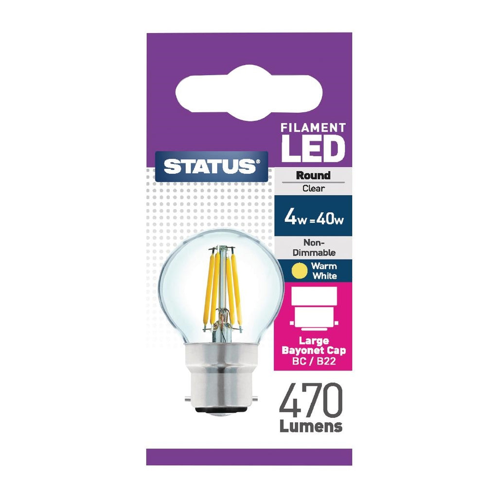 Status Filament LED Round BC Warm White Light Bulb 4/40w