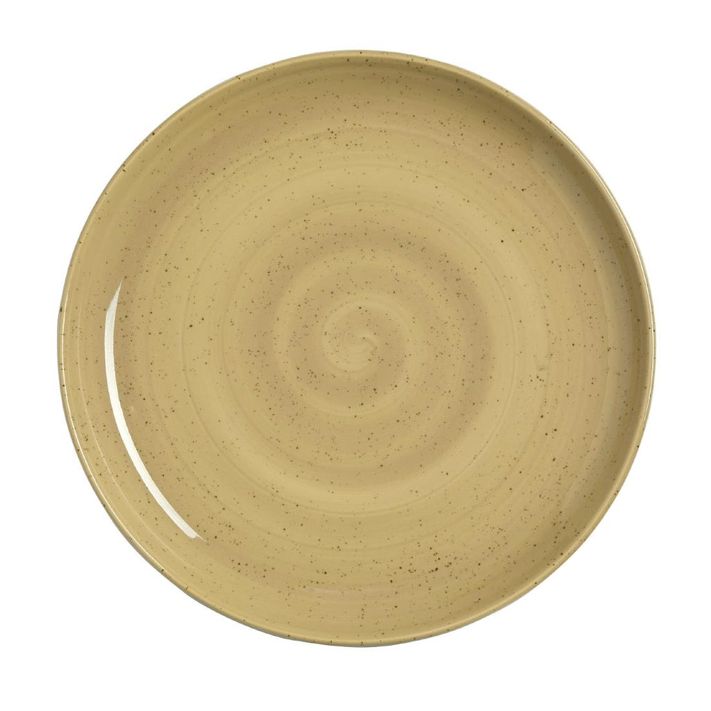 26(H)x252(Ø)mm. Pack Quantity: 12 Stripping back from heavy reactive glazes, Amari 252mm dijon coupe plates bring a light design to the table. Delicate flecks of glaze decorate gently curving profiles, providing a simple element to complement a variety of menus. Plus, this glaze provides added resistance to thermal shock, staining and chips - maintaining as-new tableware for many uses to come. As they're stackable, the plates help to maximise your cupboard space. The plates are finished with a dijon-yellow centre that contrasts with your bright and vibrant ingredients.