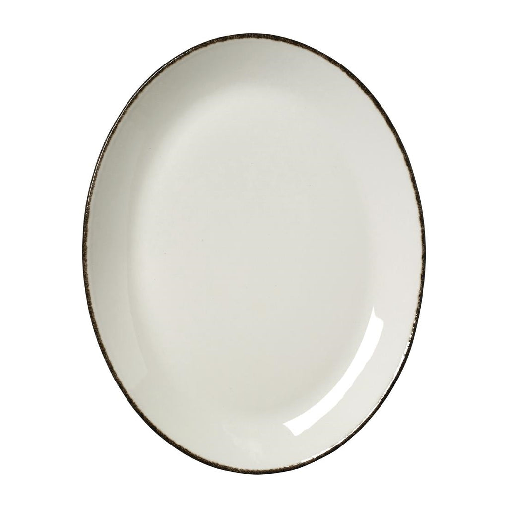 305(Ø)mm / 12". Pack Quantity: 12 Alumina-enriched whiteware with a striking reactively glazed rim that differs from piece to piece. Ideal for putting a rustic twist on your dishes without abandoning the traditional, sophisticated feel of whiteware. Microwave, freezer and dishwasher safe.