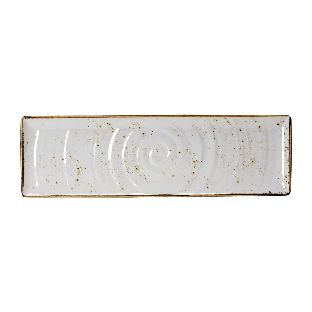 Size: GN 2/4. Material: Melamine Ensure your food displays grab guests' attention using this GN 2/4 white Steelite Craft Melamine rectangular platter. Boasting a sleek white colourway and speckled-glaze effect finish, this platter oozes an artisan elegance, adding rustic charm and character to your presentation. The melamine build makes the tray remarkably robust and resistant to chipping and staining, preserving its premium quality for an age to give you superb value for money. This melamine material means the platter is also safe for machine washing, enabling rapid and thorough cleaning.