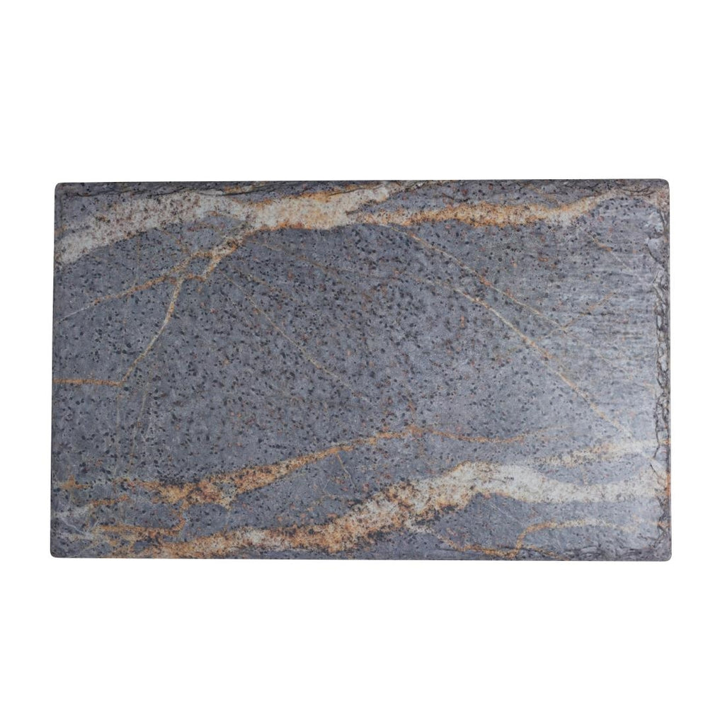 GN 1/1. 323(W)x530(L)mm. Pack Quantity: 24 Give your food presentation a beautiful rustic touch with these GN 1/1 rectangular trays from the Quarry collection by Steelite Creations Melamine. They feature a unique, stone-like decal on a highly durable melamine body and are ideally sized to meet the needs of any buffet presentation.