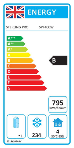 Sterling Pro Cobus SPF400W Solid Door White Upright Freezer, 360 Litres