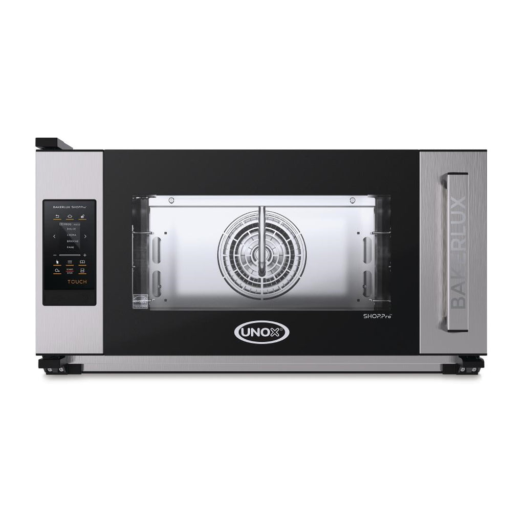 Side Opening Door with Auto Open Created to be perfect in every detail. The Unox Bakerlux Elena 3 Grid Convection Oven provides a compact solution for cooking frozen baked products. With stylish front-of-house good looks and an intelligent touch screen control panel, the Unox is incredibly easy to use and ideal for small bakeries, cafés and other similar food shops. The oven is designed to bake perfectly, all day, every day, so the Intensive Cooking functionality maximises baking efficiency to optimise production. Dry Plus ensures humidity is controlled precisely to help you achieve just the results you're looking for.