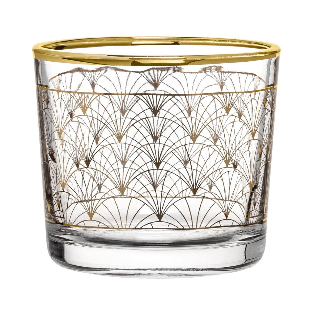 Pack Quantity: 48 Add a stylish and warming charm to your table services with these glass candle holders with gold embossment from Utopia's Alanya range. The holders feature an eye-catching, modern design that suits any venue. And as they're dishwasher-safe, the candle holders are quick and easy to clean.