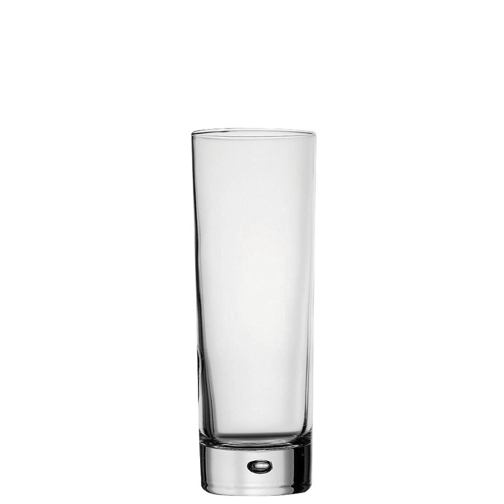 300ml/10.5oz. Pack quantity: 24 A straight sided comprehensive tumbler range complete with a distinctive heavy base and bubble feature. Ideal for everyday use and a stylish alternative to classic hiballs, these Centra 300ml tall glasses are manufactured from machine-made glass.