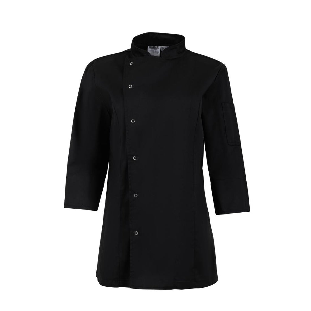 This Whites ladies fitted chef jacket features a stylish black design and is in size L. For other sizes, please select from the drop-down menu.