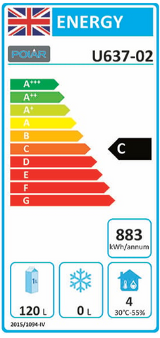 155W. Total usable capacity: 161 Ltr. R600a This cleverly designed G-Series counter fridge from Polar combines impressive refrigeration capacity with an ideal worktop for food prep or positioning small appliances....