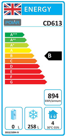 210W. Total usable capacity: 258 Ltr. R600a "The Polar C-Series 365 Ltr freezer is an excellent choice for less demanding professional kitchens with limited space. With its lockable door, attractive white exterior, precise digital controls and rear fixed castors, the freezer has all the features you need to ensure reliable day-to-day operation.