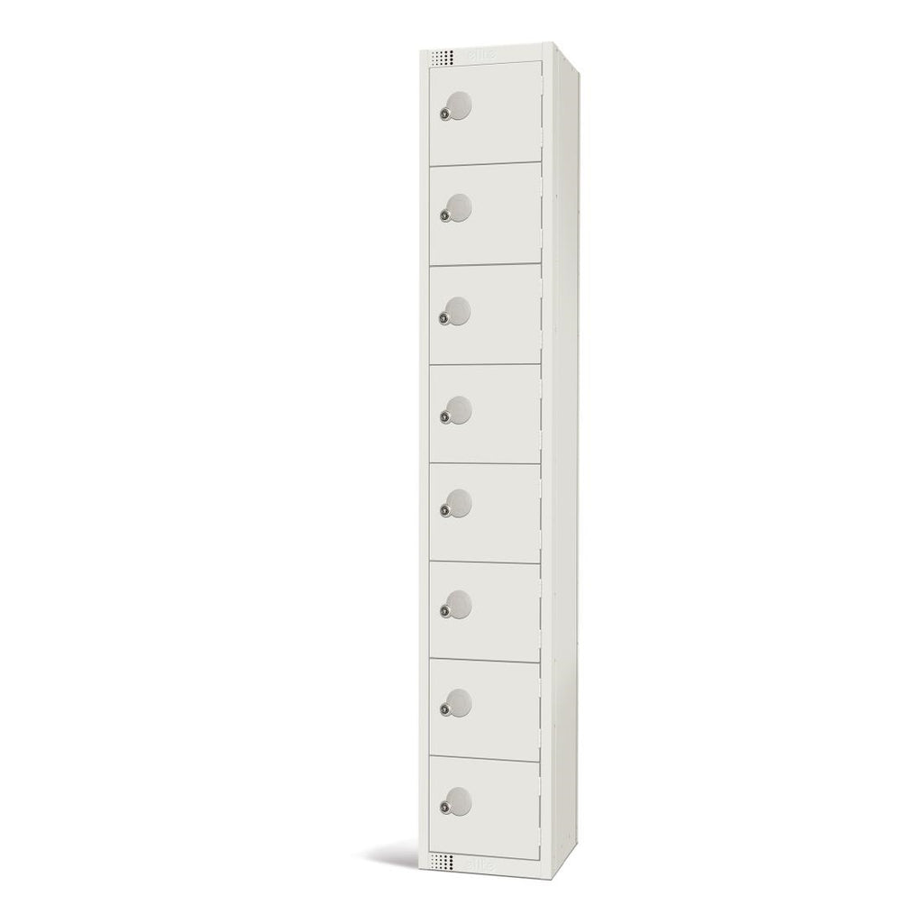 Camlock with Flat Top These sturdy and hygienic Elite 8 door lockers are ideal for schools, gyms and leisure facilities with an antibacterial coating which is effective against MRSA and E-Coli. Designed with a welded steel frame construction and reinforced doors, the lockers are built to stand up against everyday knocks and bumps, and also feature pre-drilled nesting holes so that they can be fixed to the wall to maximise space and keep them stationary for the duration of their lives.