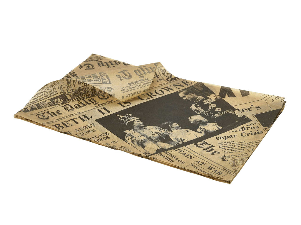 Genware PN0829P Greaseproof Paper Brown Newspaper Print 25 x 35cm
