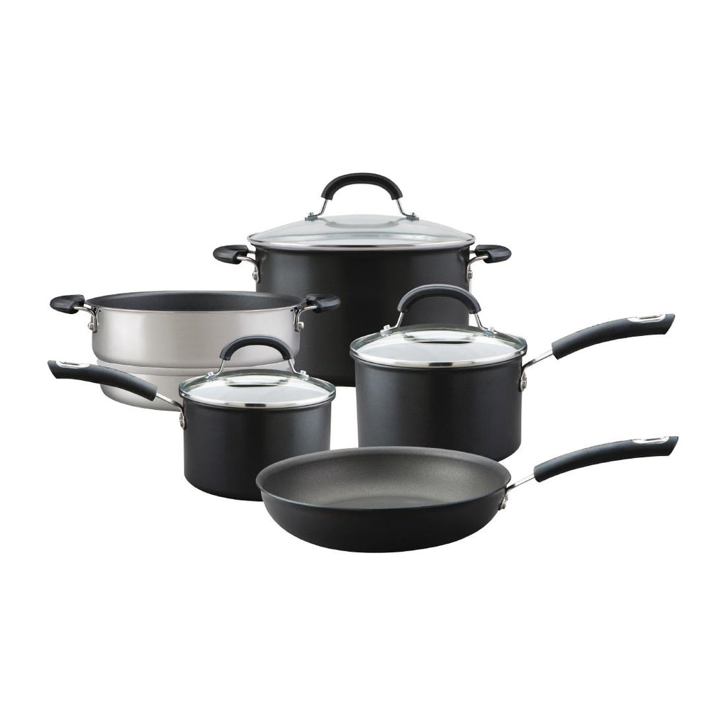 5 pieces Exceptional cooking for life with the Circulon Total hard anodised 5 piece pan set.